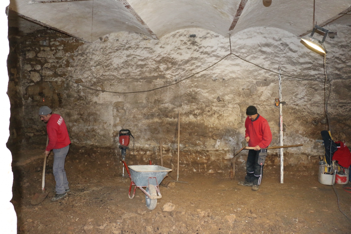 In die große Mauer muss ein Loch rein, damit wir von der Straße überhaupt direkt aufs Grundstück können. Es wird ein Tor entstehen für die Einfahrt auf das Garagenparkdeck. Das ganze ist ein heikles Unternehmen, weil wir die Tragfähigkeit der Mauer nicht genau kennen. Aber unsere Bauarbeiter gehen behutsam ans Werk und tragen Stein für Stein mit der Hand ab.