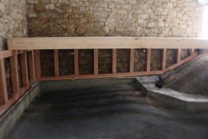 Es war knapp, aber jetzt sind sie an Ort und Stelle: 14m lange Deckenbalken!! Und nach 2 Tagen haben wir einen Kriechkeller mit Fenster dessen Decke der Boden unseres Erdgeschosses ist.
